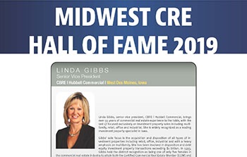 CBRE | Hubbell Commercial's Senior Vice President Linda Gibbs, CCIM, SIOR, has been named one of the 2019 inductees for her outstanding work in the commercial real estate market. Linda brings over 33 years of commercial real estate experience to the table and is widely recognized as a leading investment property specialist in Iowa along with her partner Tim Sharpe.