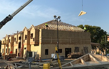 What was an empty lot Monday morning, now holds this two-story building. Since we were here this afternoon, the roof was installed and organizers say it couldn't be done without all of the volunteers and the $3 million in donations.