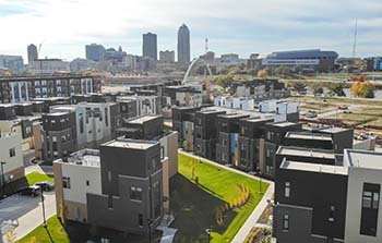 A three-bedroom, two-bathroom townhouse with a rooftop patio in the Bridge District is currently listed at $580,400, $313,540 more than the median metro price for a detached single-family home, according to the Des Moines Area Association of Realtors.