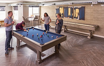 Why spend the money going out to a bar when you can have your choice of snacks, beverages, and music or TV programming around the pool table in your own community room? At the end of the night, you’re only steps away from your front door.