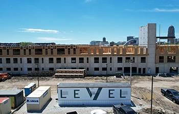 In the Bridge District neighborhood in the East Village, Hubbell Realty Company is building the third and final apartment community, called Level. Level will be located at the north end of the neighborhood north of The Banks for-sale townhomes. This five-story, 114-unit apartment community will have beautiful views of the downtown skyline, Botanical Gardens, the Women of Achievement Bridge, and the Des Moines River.