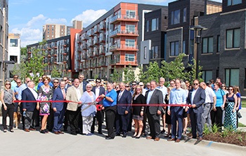 Des Moines, IA (May 31, 2018) – Hubbell Realty Company continues to make great progress at the popular Bridge District neighborhood, located in the historic East Village in downtown Des Moines. The Banks, for sale townhomes, and Verve, a modern apartment community, offer some of the best amenities in downtown, just steps away from popular downtown restaurants, Wells Fargo Arena and other entertainment venues.